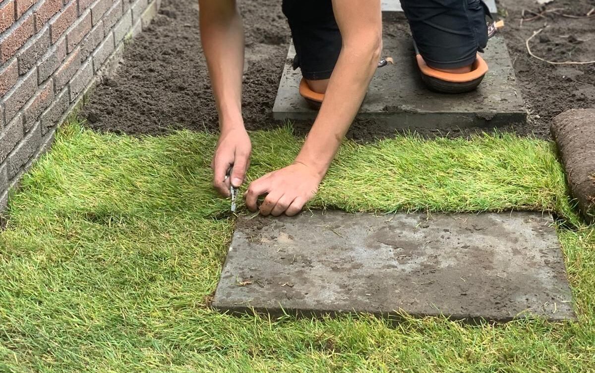 Staptegels zorgen voor een praktisch pad en een nieuw grasveld geeft een frisse, groene uitstraling.